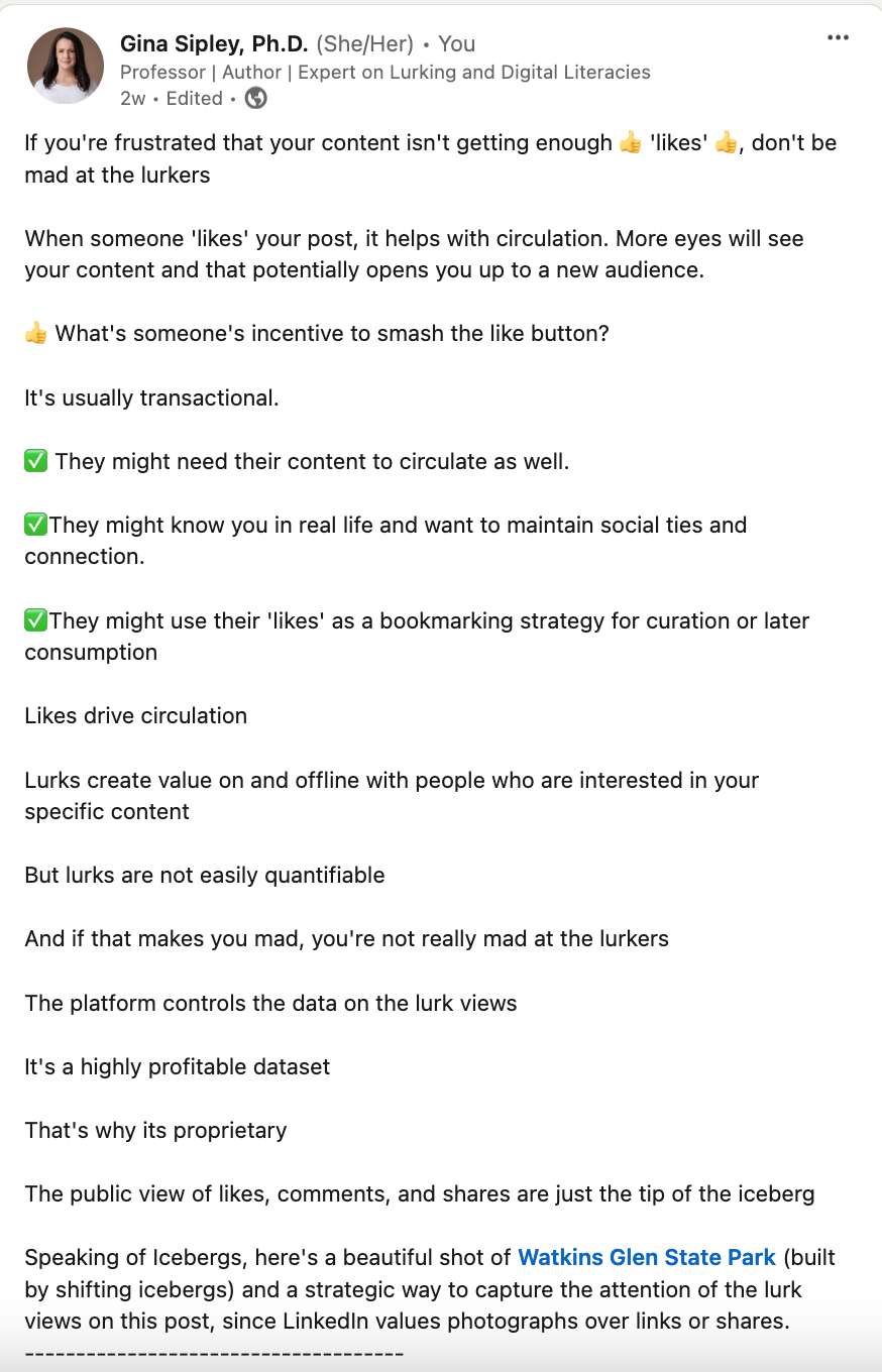 Much of the engagement I receive on LinkedIn is related to Lurker Insights, helping content creators, thought leaders, and businesses better understand and contextualize lurk views. As I write more on this topic, I'll share the details in the Words newsletter. Here's a quick overview of Lurks vs Likes: