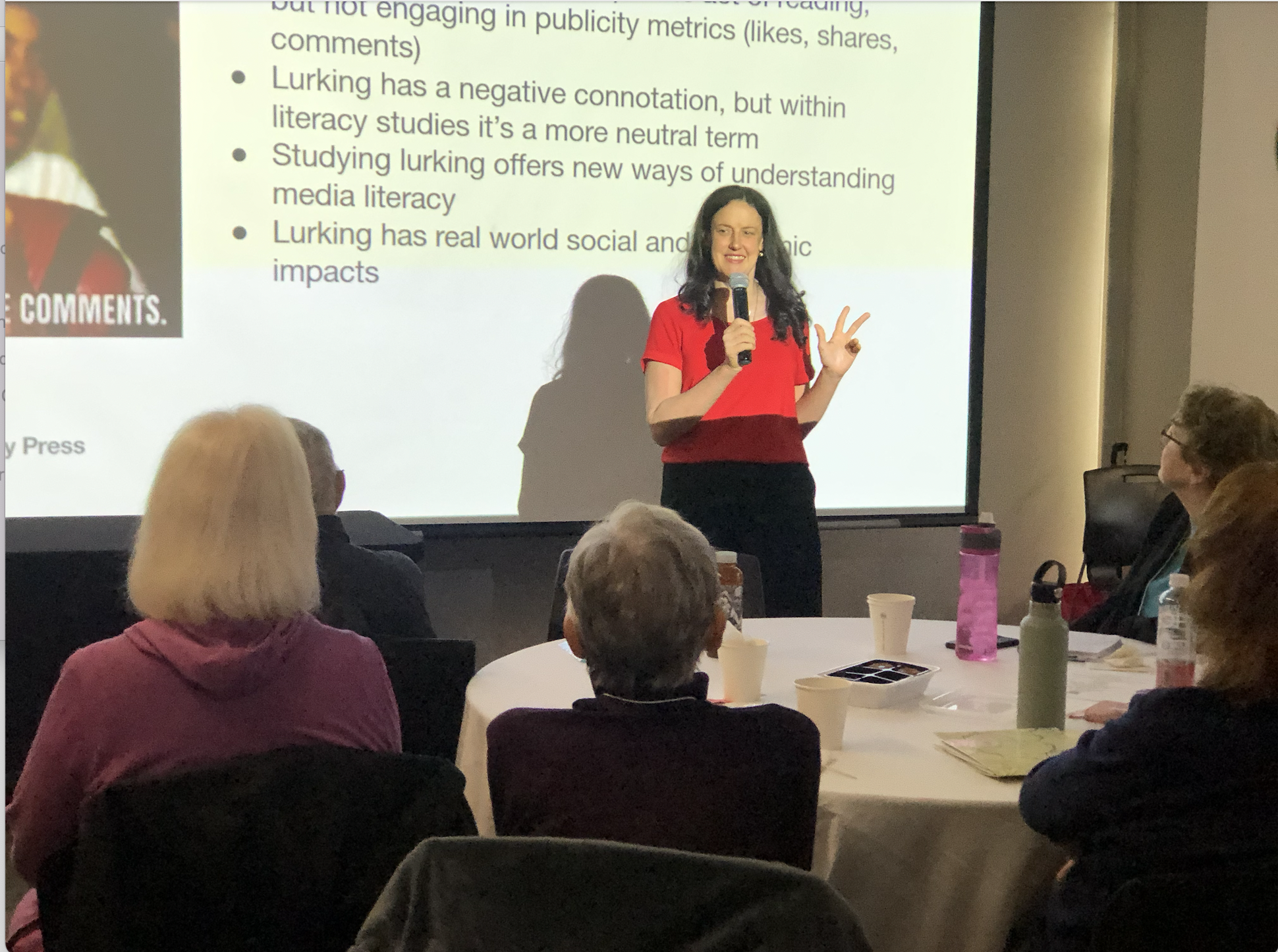 One of my goals for my work has been to broaden media literacy efforts beyond the K-12 classroom and the fifth chapter of my book outlines the global deficit in media literacy education beyond the primary and secondary levels. Moreover most media literacy in schools tends to focus on how to use new tools rather than ethical questions of why, how, and when to use these tools. I had the opportunity to give a lecture at Molloy University in their Institute of Lifelong Learning to discuss lurking. It was an energized group and now that the second book proposal is almost complete, I look forward to more opportunities to bring my work to community spaces.