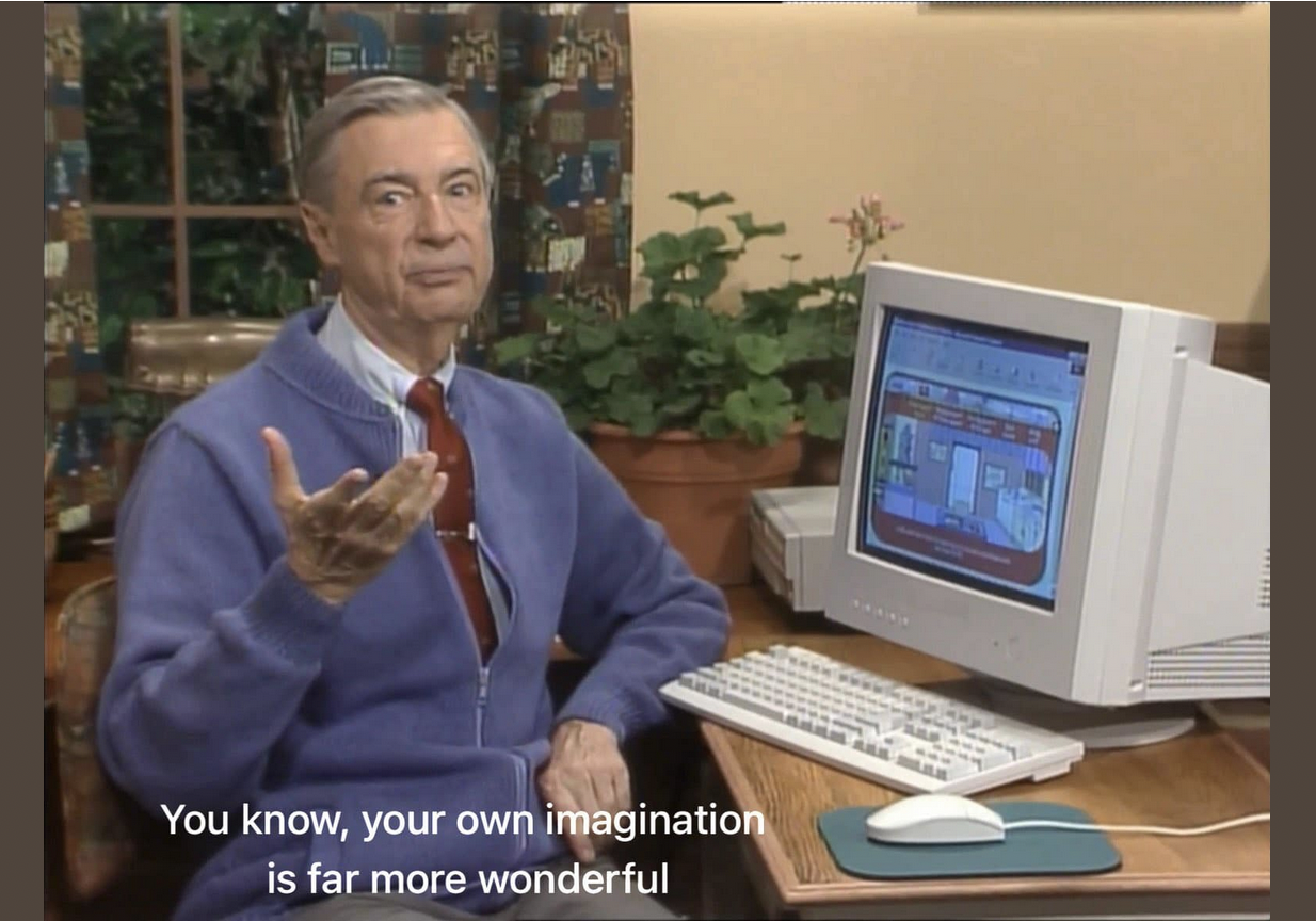 Very online people have been sharing this meme as a response to their feelings about AI and creativity. In the original quote from Mr Rogers Neighborhood, Fred Rogers tells his viewers, "You know, your own imagination is far more wonderful than any computer could ever be."